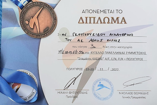 Στις 19-20 Νοεμβρίου 2022 ημέρες Σάββατο – Κυριακή πραγματοποιήθηκε στον Πολύγυρο Χαλκιδικής το Β' Πανελλήνιο Κύπελλο TAEKWON DO Σταμάτης Κάσσης της Ελληνικής Ομοσπονδίας Ταεκβοντο (ΕΛΟΤ). Η συμμετοχή του φίλαθλου κόσμου και των αθλητών ήταν πολύ μεγάλη. Σε αυτήν την σημαντική διοργάνωση από τον Αθλητικό Σύλλογο Άθλο συμμετείχαν οι παρακάτω αθλητές με τις ανάλογες διακρίσεις:
