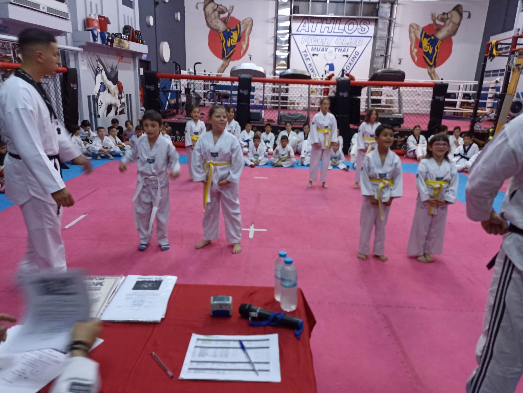 Οι εξετάσεις πραγματοποιήθηκαν το Σάββατο 18.00 η ώρα στις εγκαταστάσεις του Golden Athlos 21ης Ιουνίου 43 με την προσέλευση συγγενών και φίλων των μικρών αθλητών να γεμίζουν τις εγκαταστάσεις. Με την έναρξη των εξετάσεων οι αθλητές εξετάστηκαν σε σύνολο κινήσεων (poumse), τεχνικές αυτοάμυνας, στο αγωνιστικό και στις θραύσεις όπου ο κόσμος και συγγενείς ενθουσιάστηκαν από το αποτέλεσμα . Το επίπεδο όλων των αθλητών ήταν πολύ καλό άλλα την παράσταση έκλεψαν οι μικροί αθλητές στις θραύσεις των σανίδων.